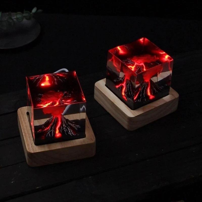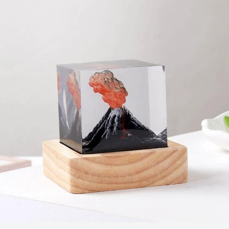 โคมไฟตั้งโต๊ะสำหรับเด็ก โคมไฟภูเขาไฟเรซิ่นสร้างสรรค์ แสงไฟผ่อนคลายช่วยการนอนหลับ ของตกแต่งภูเขาไฟมีไฟ สำหรับห้องอ่านหนังสือ ห้องนั่งเล่น