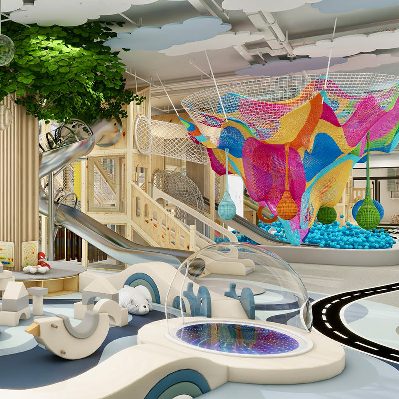 การออกแบบแบบกำหนดเอง: อนุญาตให้มีการออกแบบที่ปรับแต่งเพื่อให้เหมาะสมกับความต้องการของพื้นที่และธีมเฉพาะ ทำให้ได้สภาพแวดล้อมในการเล่นที่เป็นเอกลักษณ์และมีประโยชน์