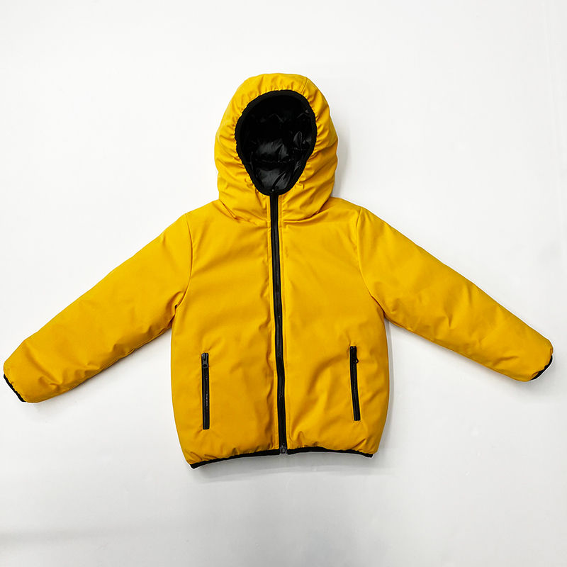 เสื้อแจ็คเก็ตเด็กแบบสบายๆ สำหรับฤดูหนาว แบบพัฟเฟอร์ สำหรับเด็กผู้ชาย แบบเดนิม แบบกลับด้านได้ กันลม กันน้ำ แบบมีฮู้ด แบบปรับแต่งได้ พร้อมหมวกคลุมหน้า