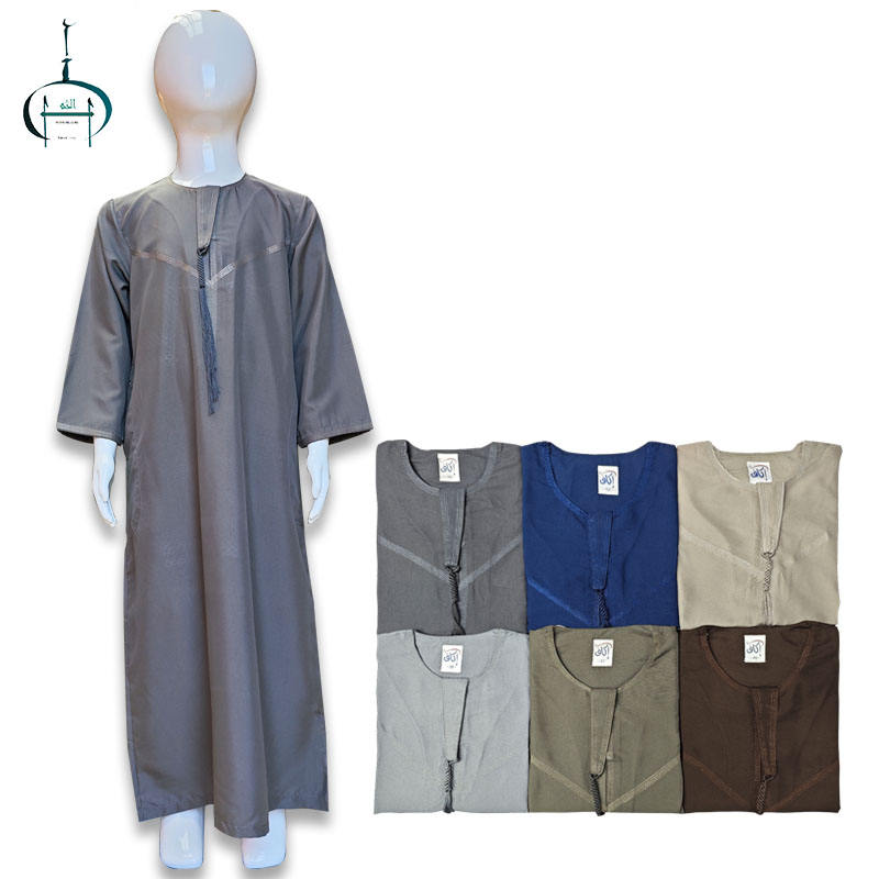 เสื้อผ้ามุสลิมแบบดั้งเดิมโพลีเอสเตอร์ระบายอากาศได้พิมพ์ลายนูนสไตล์อาหรับสำหรับเด็กฤดูหนาว