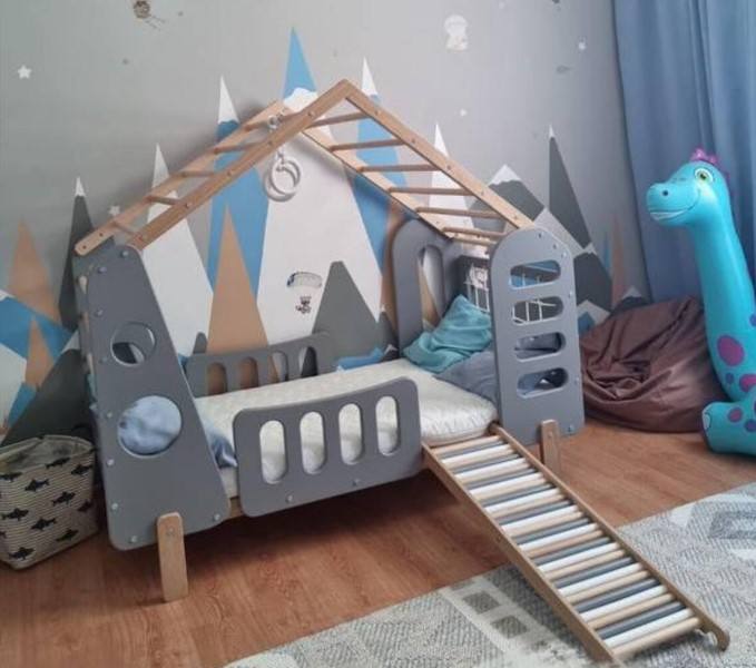 เตียงบ้านไม้สำหรับเด็กเล่นในร่ม แรงบันดาลใจจากมอนเตสซอรี่ สำหรับเด็กอายุ 2-4 ปี พร้อมเครื่องเล่นแบบป่าดิบ ของเล่นคลาสสิก