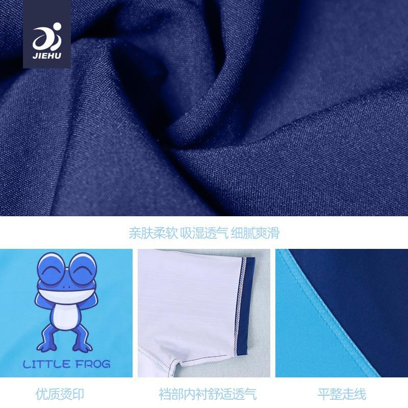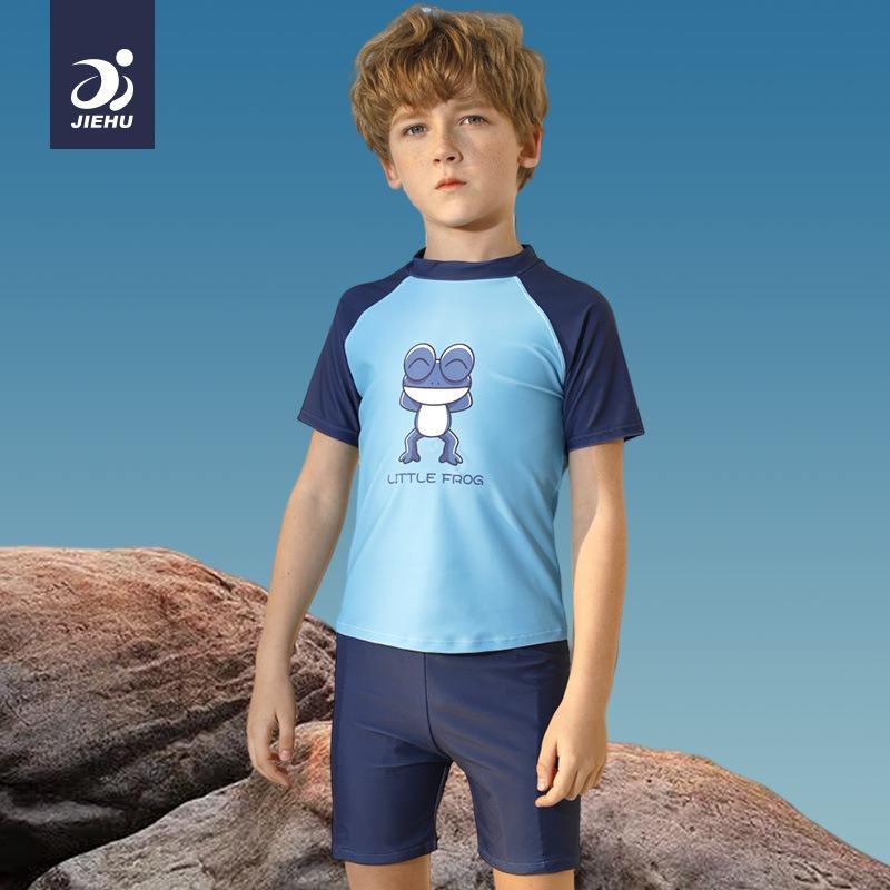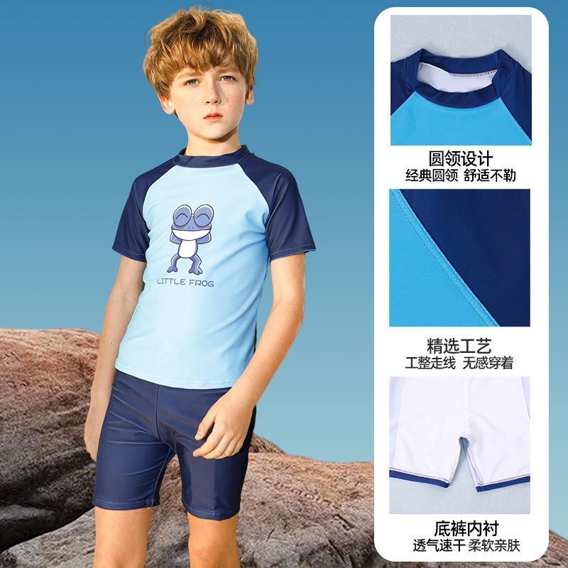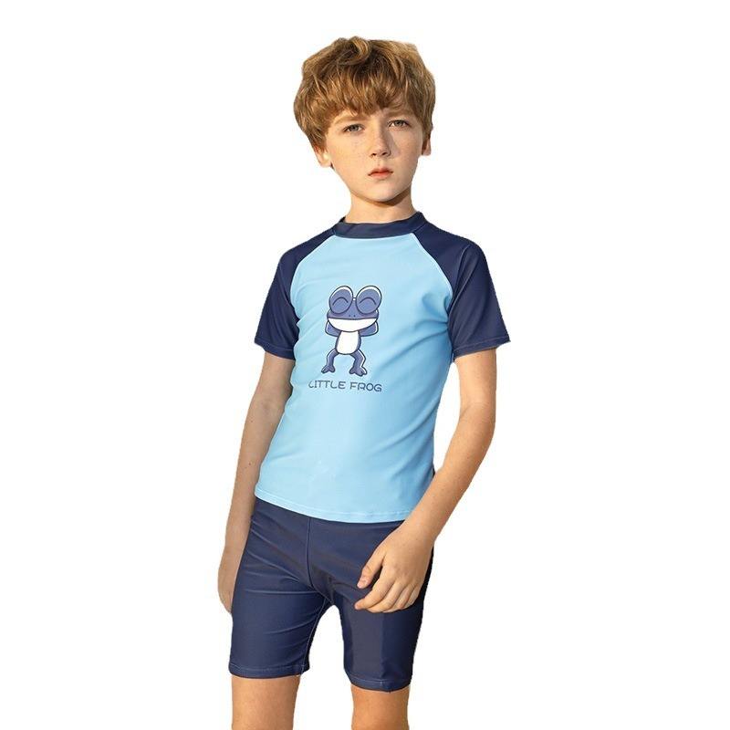 ชุดว่ายน้ำเด็ก ลายกบตัวน้อย ชุดว่ายน้ำเด็กผู้ชาย แห้งเร็ว ชุดสองชิ้น สีฟ้าทะเลสาบ สีขาว ไซส์เด็ก