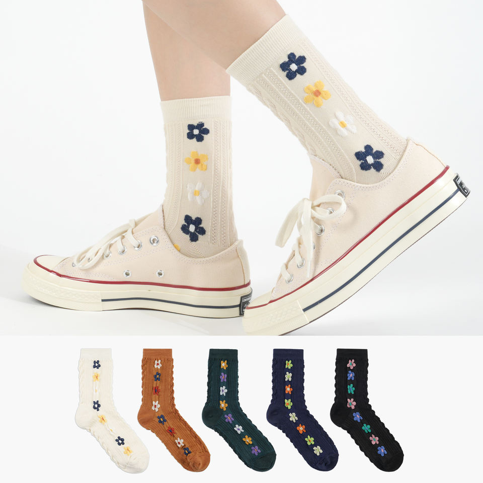 ถุงเท้าผู้หญิง Kikiya ผ้าฝ้าย ถักแบบระบายอากาศ ลายดอกไม้ ดีไซน์น่ารัก ใช้ได้ทุกวัน