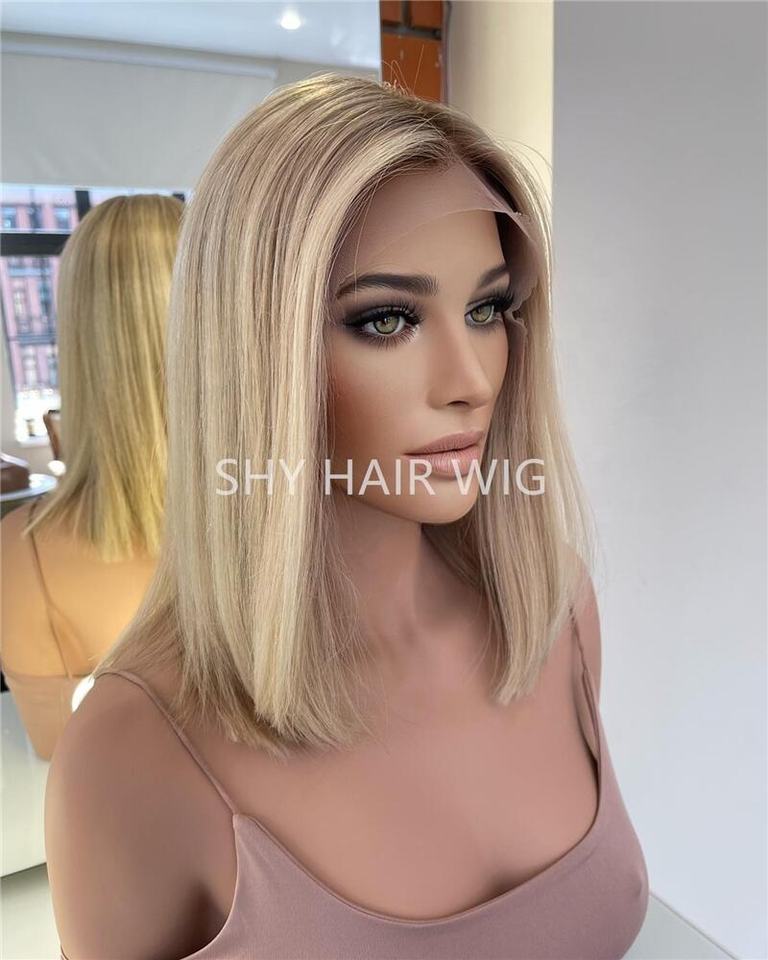 คิมคาร์ดัชยานสไตล์เดียวกัน 613 วิกผมบ๊อบสั้นสีบลอนด์ที่มีรากสีน้ําตาลผมมนุษย์เวอร์จินเปรูสําหรับผู้หญิงสีขาว