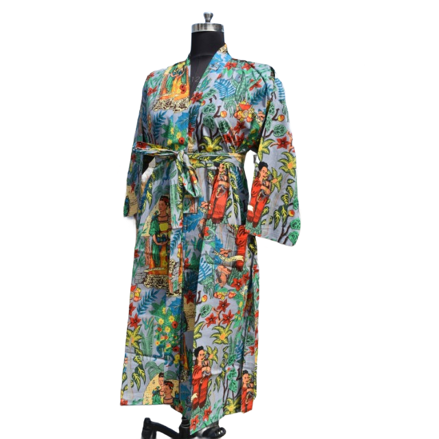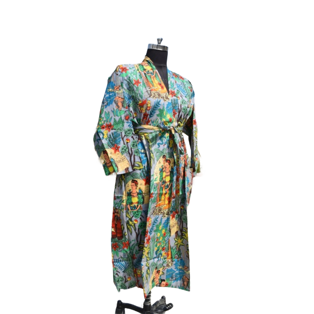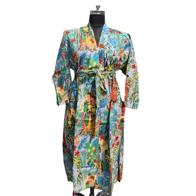 ชุดเดรสกิโมโนผ้าฝ้ายสำหรับผู้หญิง, ชุดเดรสใส่เดินชายหาดเปิดด้านหน้าสำหรับใส่ในฤดูร้อน