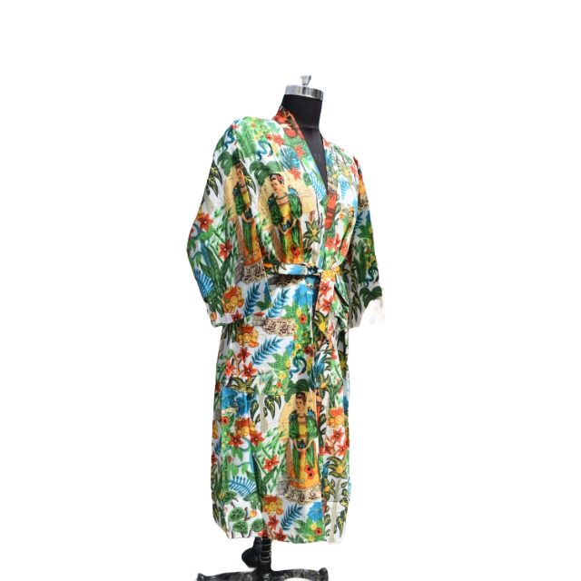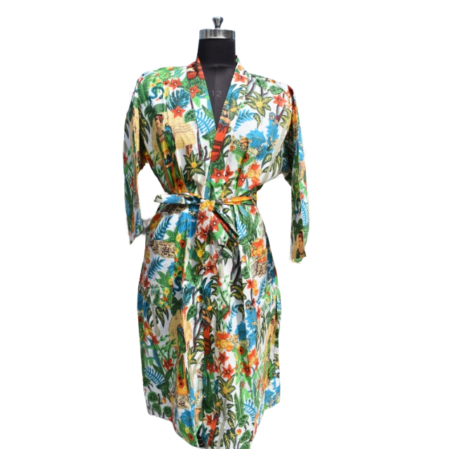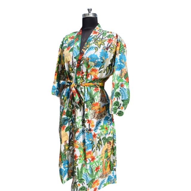 ชุดเดรสกิโมโนผ้าฝ้ายสำหรับผู้หญิง, ชุดเดรสใส่เดินชายหาดเปิดด้านหน้าสำหรับใส่ในฤดูร้อน