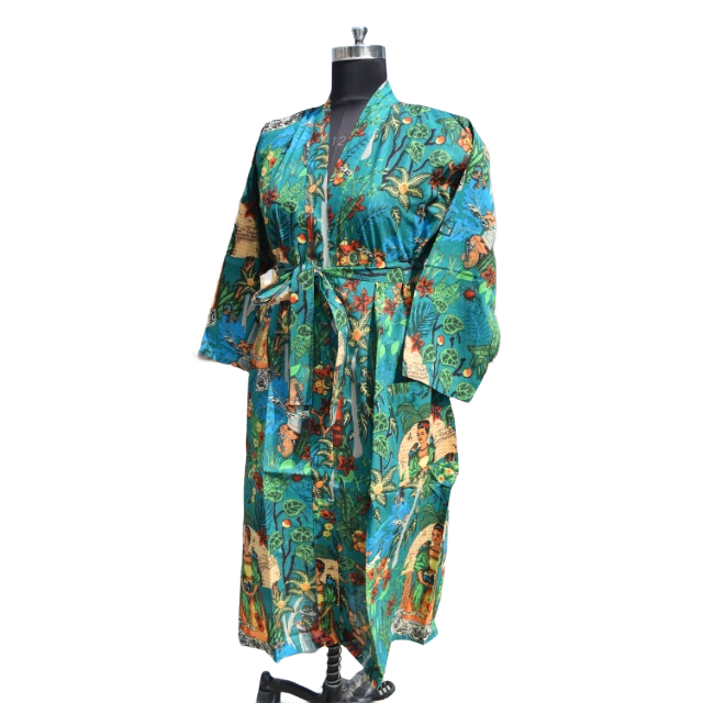 ชุดเดรสกิโมโนผ้าฝ้ายสำหรับผู้หญิง, ชุดเดรสใส่เดินชายหาดเปิดด้านหน้าสำหรับใส่ในฤดูร้อน