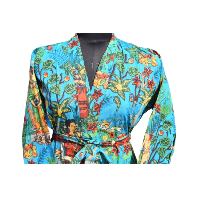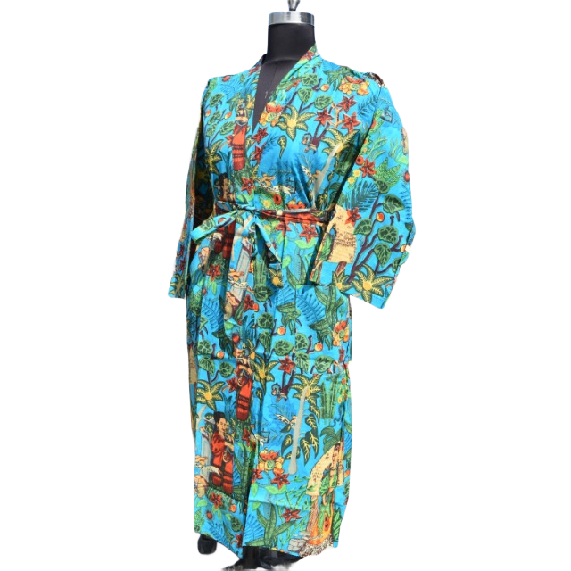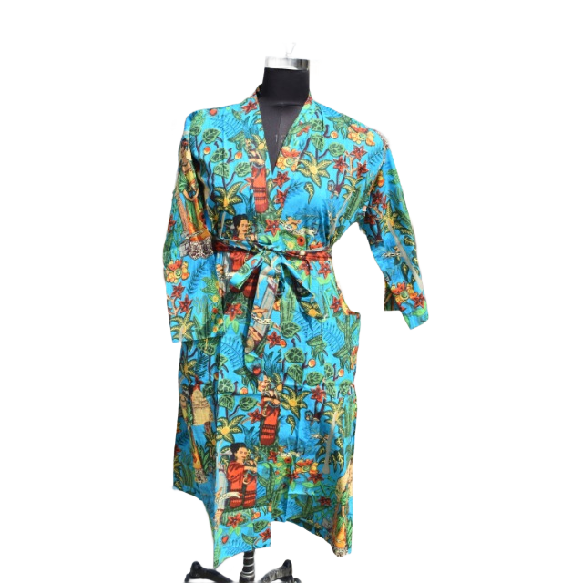 Kimono Cotton Bathrobe Women's Summer Open Front Sleepwear Robe Beach Wear Dress
