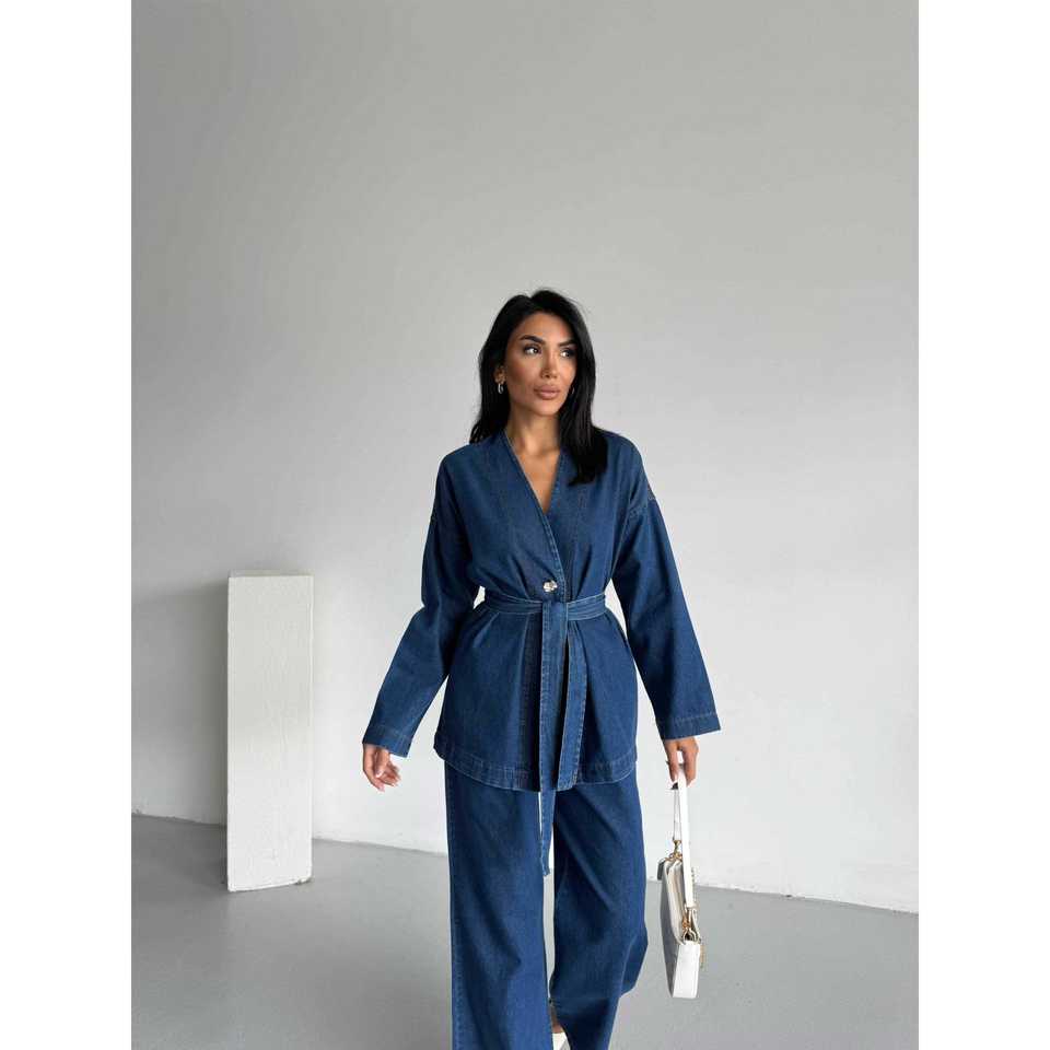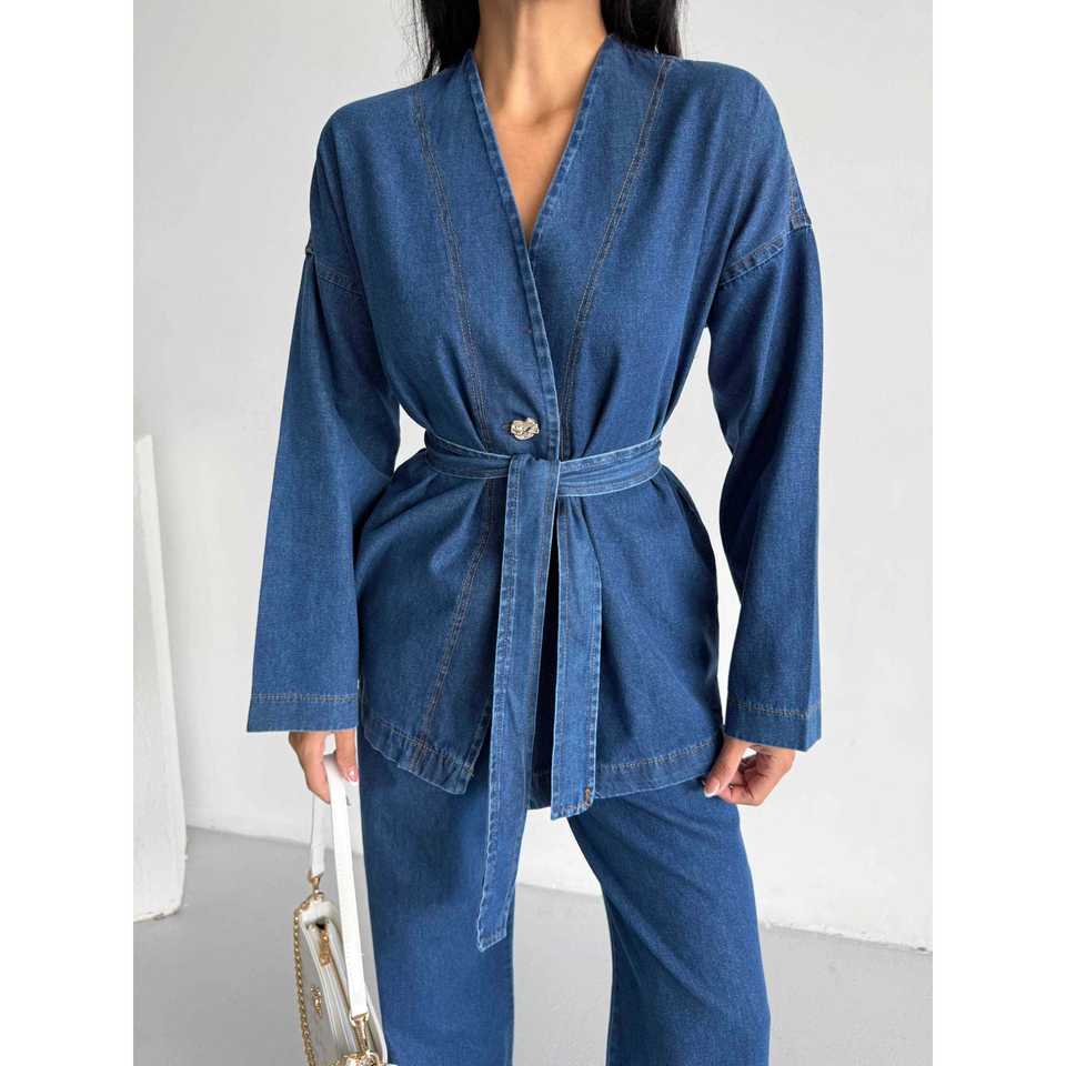 ชุดกิโมโนเดนิม 1801 ลายปักดอกไม้ ผ้าฝ้ายทอ ทรงเข้ารูป ท็อปยาวคลุมเข่า มีไซส์ XS XXS XL XXL สำหรับฤดูร้อน
