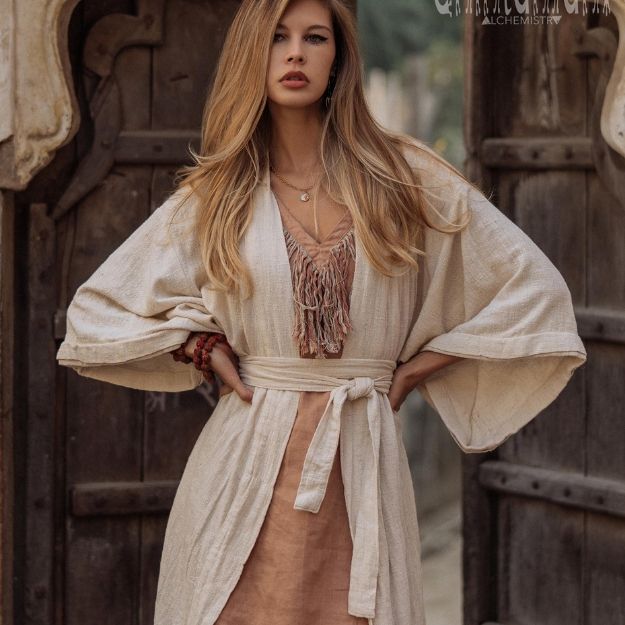 เสื้อคลุมกิโมโนผ้าลินินสำหรับผู้หญิง