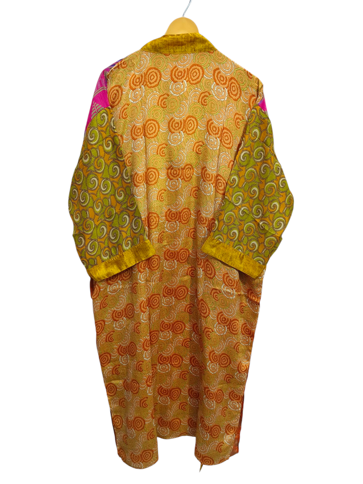 ชุดกิโมโนสำหรับผู้หญิงชุดคลุมบิกินี่ชุดคลุมสำหรับใส่กลางคืนชุดคลุมยาวชุดกิโมโนผ้าไหมส่าหรีแบบรีไซเคิลสไตล์วินเทจทำด้วยมือ