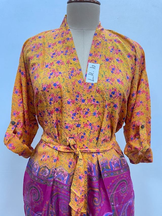 ชุดกิโมโนสำหรับผู้หญิง ชุดคลุมฤดูร้อน ชุดคลุมบิกินี่ ชุดนอน ชุดคลุมยาว ทำมือ สไตล์อินเดีย วินเทจ ผ้าไหมซารีรีไซเคิล กิโมโนแบบผูกด้านหน้า เนื้อผ้านุ่ม