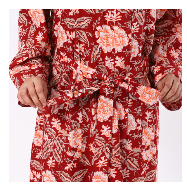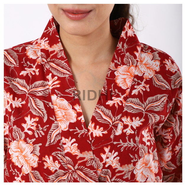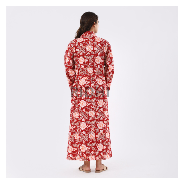 ชื่อสินค้า:กิโมโนผ้าฝ้ายสีแดงลายพิมพ์คริสต์มาส