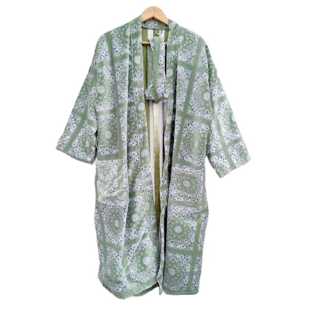ชุดคลุมสำหรับอาบน้ำชุดคลุมกิโมโนสีเขียวอ่อนสำหรับผู้หญิงชุดคลุมอาบน้ำแขนยาว