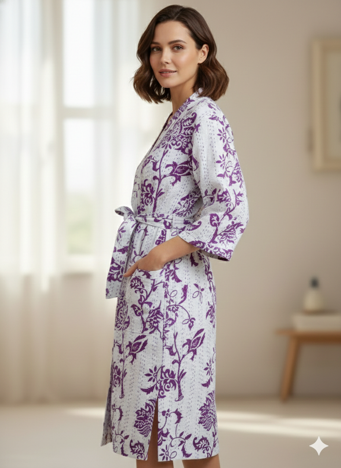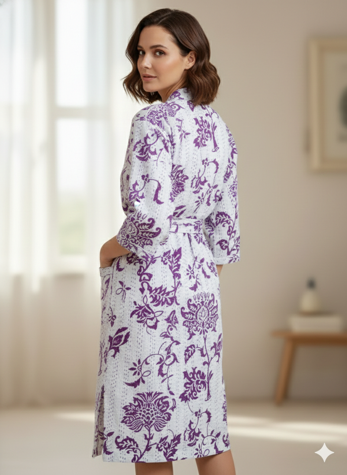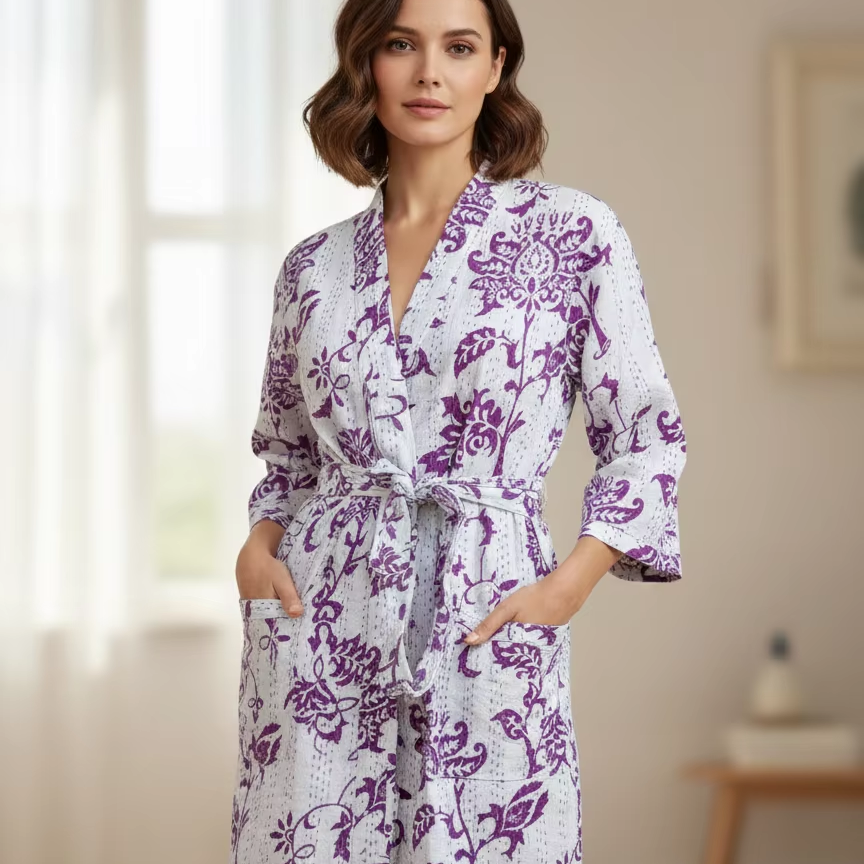 กิโมโนยาวผ้ากันธาพิมพ์ลายใหม่สำหรับผู้หญิง
