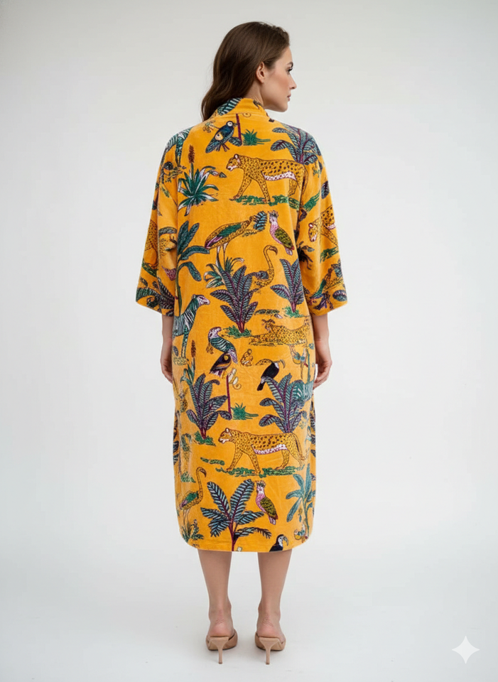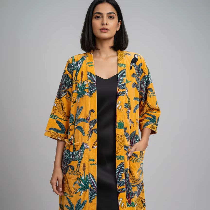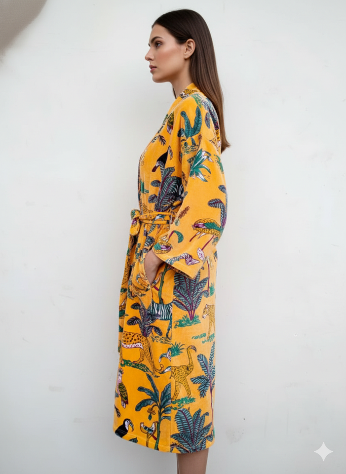ชุดกิโมโนผ้ากำมะหยี่พิมพ์ลาย ซับในผ้าฝ้ายอินเดีย สไตล์โบโฮ คลาสสิก สวยหรู เซ็กซี่ ของขวัญสำหรับผู้ใหญ่ ฤดูหนาว