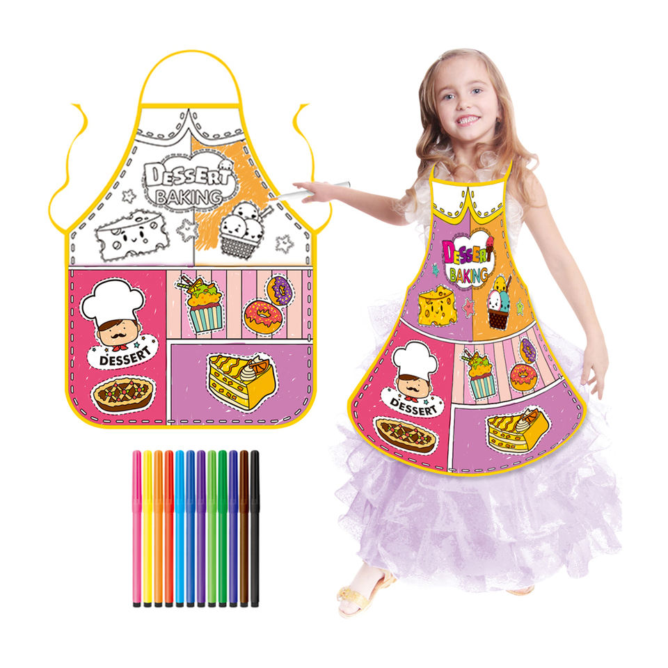 ลักษณะ:12สีปากกาวาดภาพล้างทำความสะอาดได้ Doodle ของเล่นเด็กภาพวาดผ้ากันเปื้อน