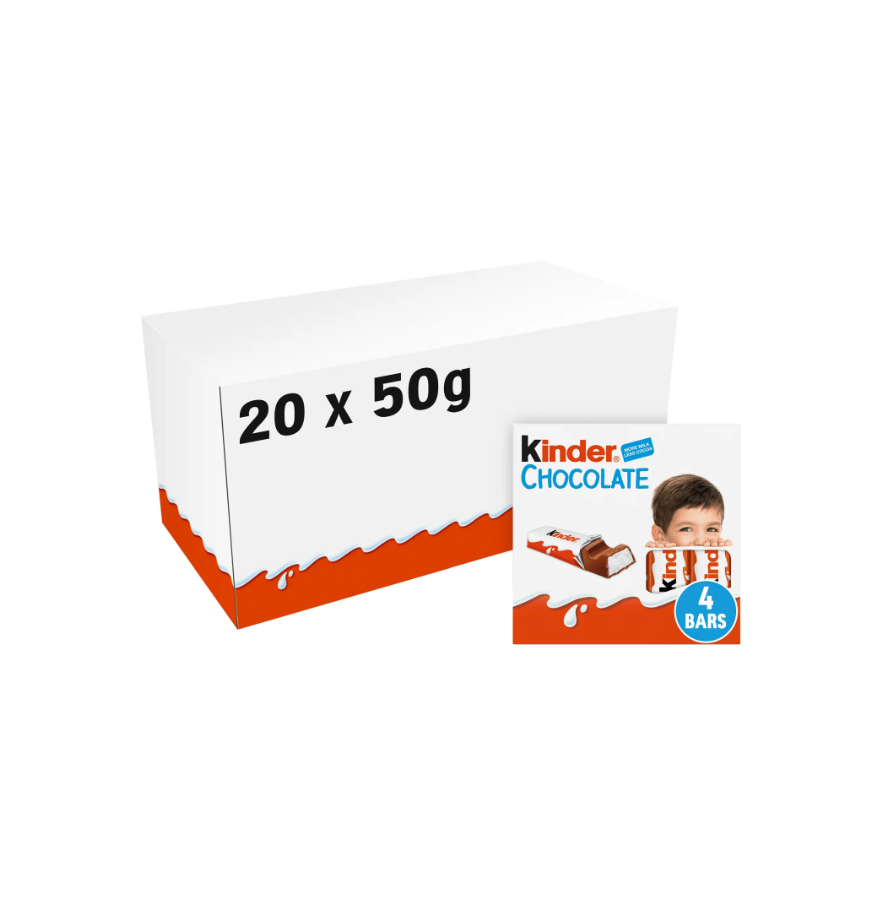 คินเดอร์ ช็อกโกแลต รีเอล แพ็ค 4 ชิ้น 50 กรัมต่อหนึ่งหน่วยบริโภค 12.5 กรัมต่อชิ้น 4 ชิ้นต่อแพ็ค 50 กรัม รวม 70 แคลอรี่ต่อชิ้น