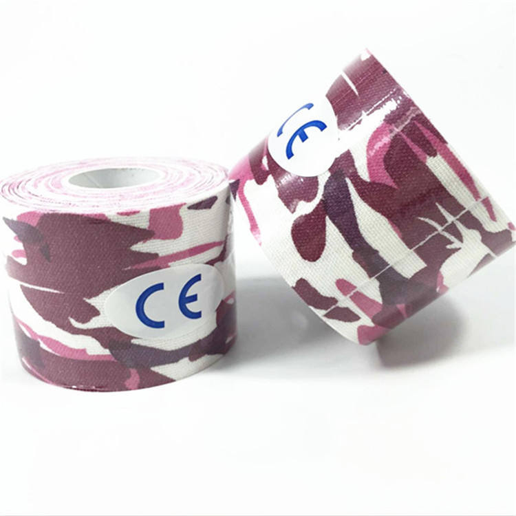 เทปคิเนซิโอโลยีลายพราง ผ้าพันแผลยืดหยุ่นสำหรับกีฬา ขนาด 5 ซม. x 5 ม. ได้รับการรับรองมาตรฐาน CE ผ้าพันแผลยืดหยุ่นสำหรับมือ ข้อมือ เข่า ข้อเท้า