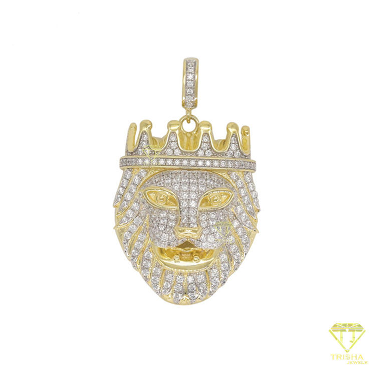 King Jungle เครื่องประดับฮิปฮอปเงินคุณภาพดีจี้หัวสิงโตที่มีเสน่ห์จี้มงกุฎแร็ปเปอร์
