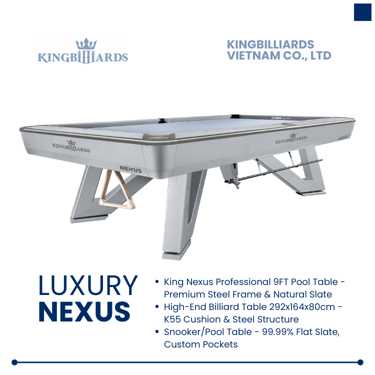 โต๊ะพูล King Nexus ขนาด 292x164 ซม. โครงเหล็กคุณภาพสูง แผ่นหินชนวนพรีเมียม ผลิตในเวียดนาม (OEM)