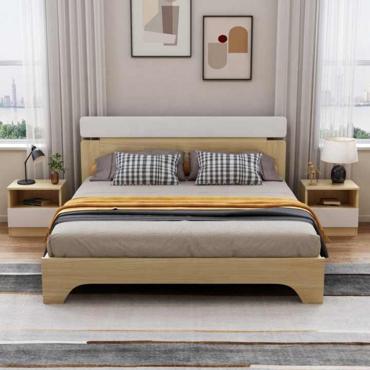 โครงเตียงไม้จริงขนาดคิงควีน พร้อมลิ้นชักเก็บของ เฟอร์นิเจอร์ทันสมัย ชุดห้องนอน