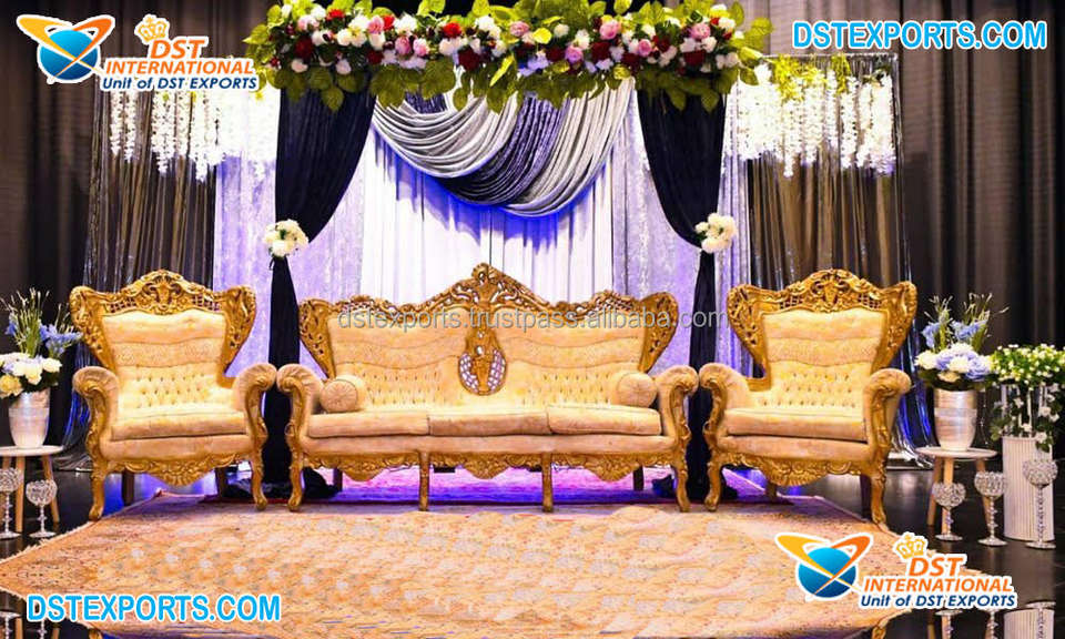 King Queen White Finish Wedding Stage Loveseat Deluxe Wedding White Sofa Set for Bride Groom Italian Style Pure White Sofa Set
