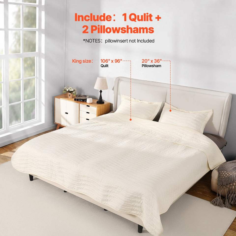 ชุดผ้าห่มคิงไซส์ 3 ชิ้น ผ้าไมโครไฟเบอร์น้ำหนักเบา สีเบจ 1 ผ้านวม 2 ปลอกหมอน ขนาดสบาย ผ้าคลุมเตียง