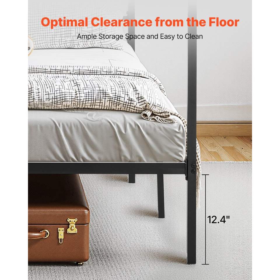 โครงเตียงเหล็กขนาดคิงไซส์พร้อมแผ่นเหล็กแข็งแรงทนทาน ดีไซน์สี่เสา มีพื้นที่เก็บของใต้เตียง