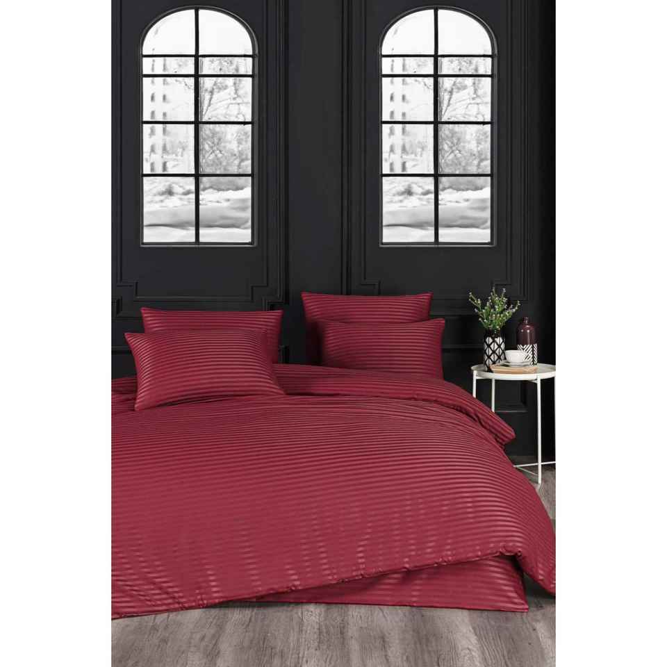 King Size Striped Satin 4-Piece Bed Set 100% Cotton Quality Fitted and Flat Sheet Cover with Bag Packaging Simple Style