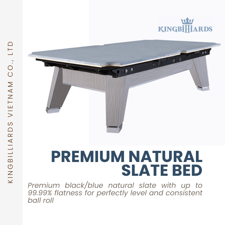 โต๊ะพูลโครงเหล็กกลึงความแม่นยำสูง King Winner พร้อมช่องใส่ลูกแบบกำหนดเอง รางรับแรงกระแทกสูง ผลิตจากโรงงานในเวียดนามโดยตรง สำหรับการแข่งขัน