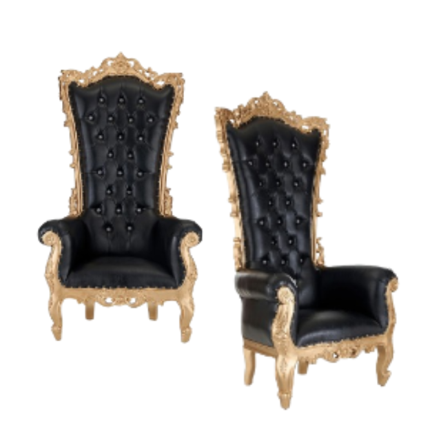 เก้าอี้แต่งงานหรูหราสำหรับเจ้าบ่าวและเจ้าสาวเก้าอี้บัลลังก์ทองคำด้านหลังสูงและราชินี