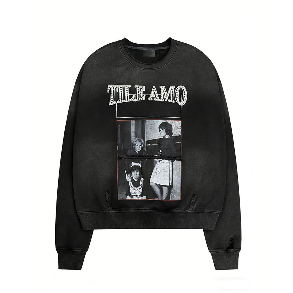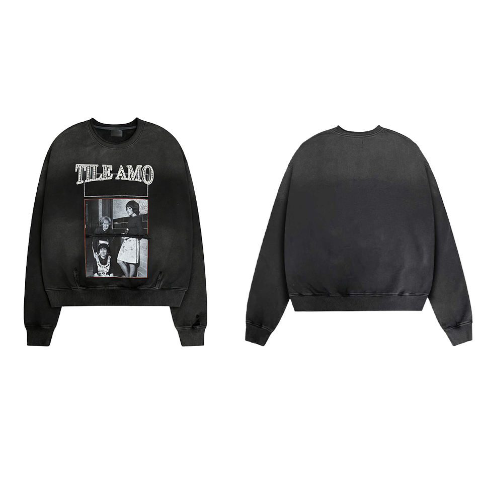 เสื้อสเวตเชิ้ตคอกลมทรงหลวมพิมพ์ลายฟอกสีสไตล์ฝรั่งเศสสำหรับผู้ชายจาก KingSen Wholesale ผ้าฝ้าย 100% ระบายอากาศได้ดี สวมใส่สบายสไตล์สตรีทแวร์