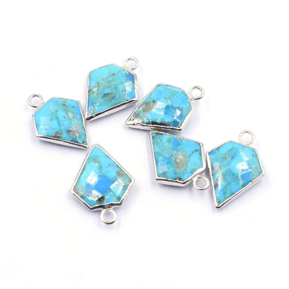 Kingman บล็อกเทอร์ควอยซ์15-17มม. พร้อมประกันตัวเพชรรูปเงินชุบหินธรรมชาติจี้