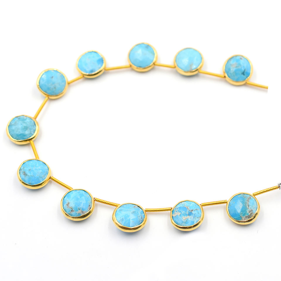 Kingman Block Turquoise Gold Plated Top Side Drilled 11 Beads Strand