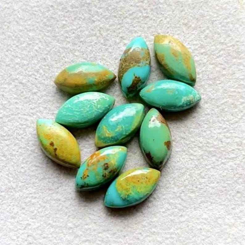 พลอยคิงแมนเทอร์ควอยซ์ทรงมาร์คีส์ปรับขนาดแล้ว 10 ชิ้น/ล็อต พลอยคิงแมนเทอร์ควอยซ์ธรรมชาติแบบหลังแบนสำหรับทำเครื่องประดับ