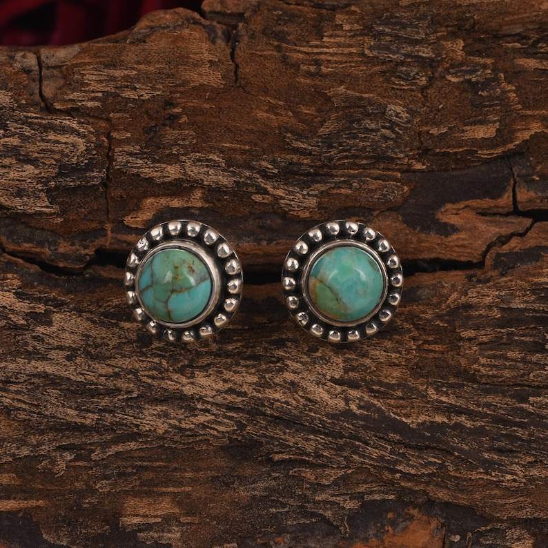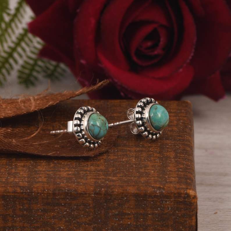 ต่างหูสตั๊ดสีเทอร์ควอยส์ของ kingman เครื่องประดับสไตล์ Boho เงินสเตอร์ลิง