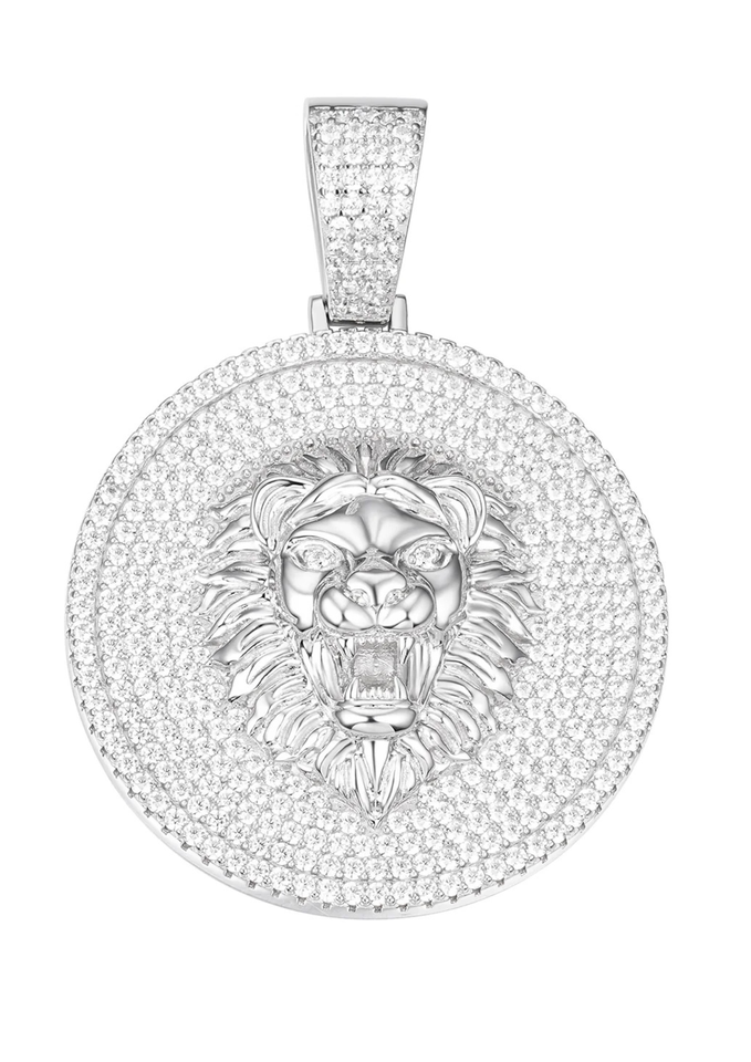 จี้รูปสิงโตประดับเพชรโมอิสซาไนต์เต็มตัว Kings Pride ชุบทอง 14K และโรเดียม สำหรับงานปาร์ตี้