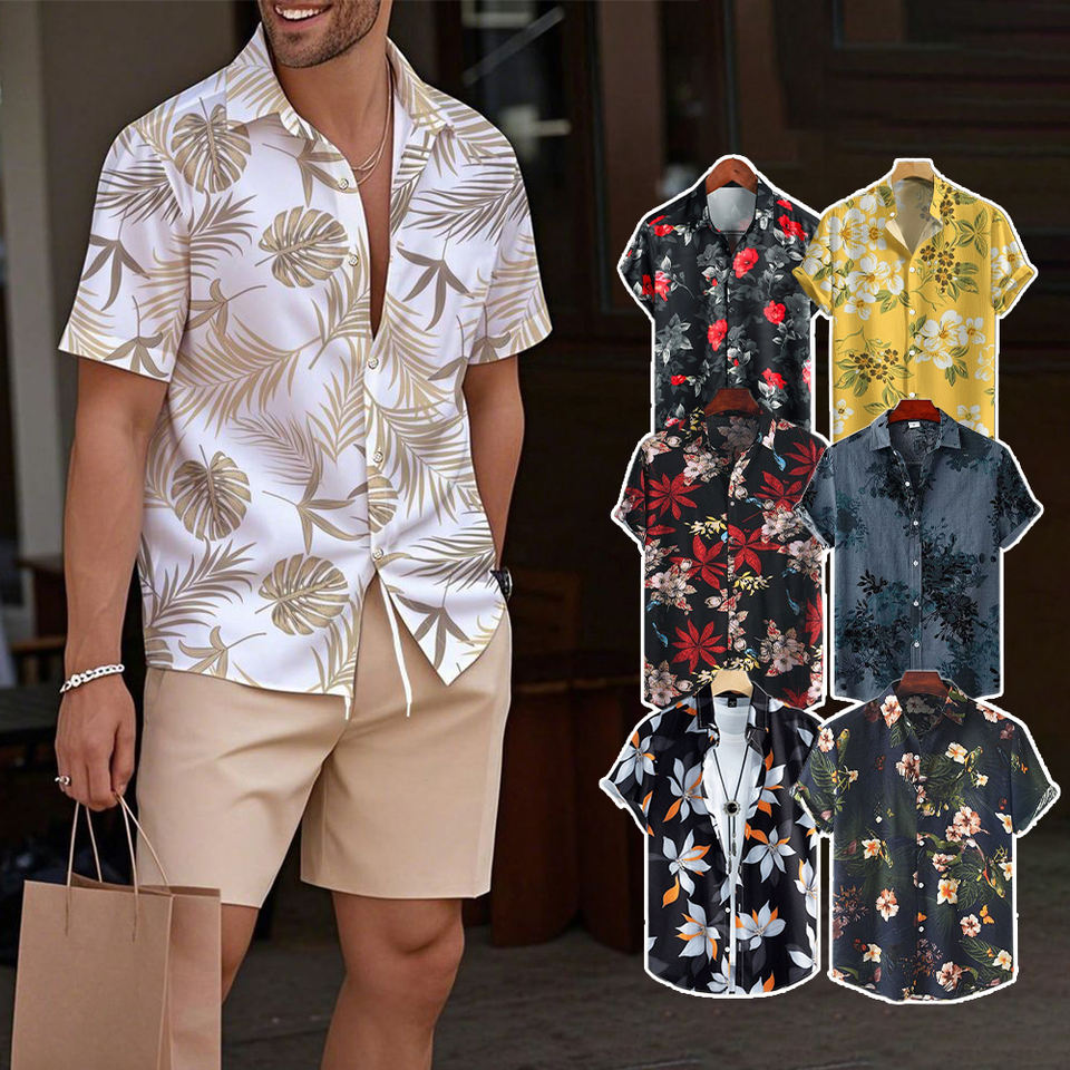 เสื้อเชิ้ตคอกวีลำลองผู้ชาย Kingsen พิมพ์ลายตามสั่ง แฟชั่นใหม่ ระบายอากาศได้ดี เป็นมิตรกับสิ่งแวดล้อม แห้งเร็ว คุณภาพสูง ลายดอกไม้