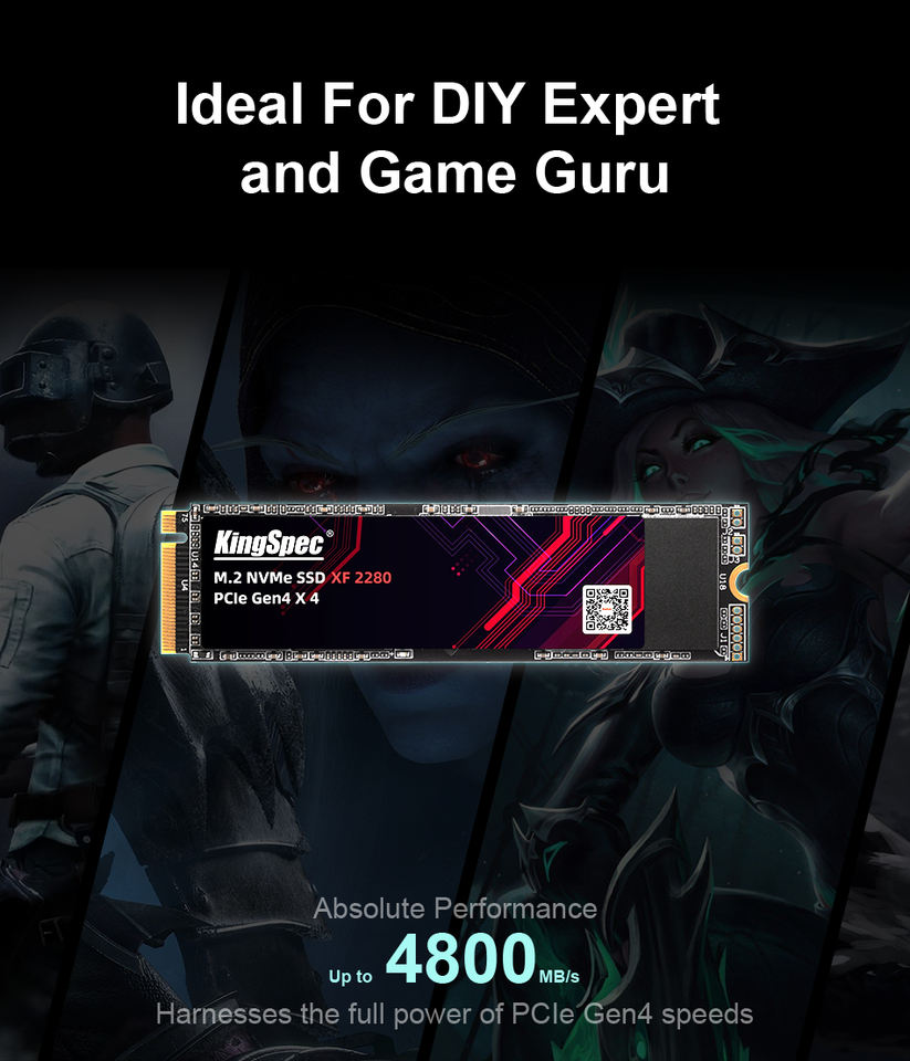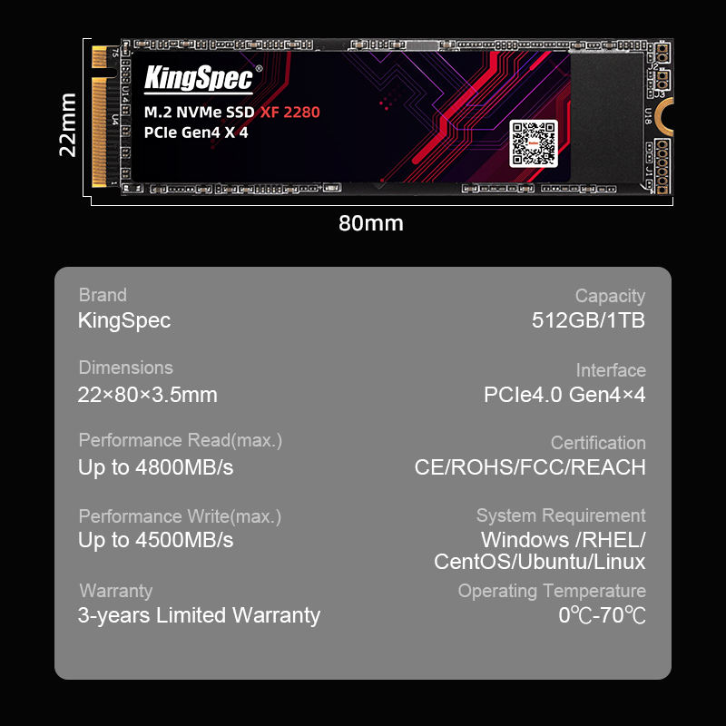 KingSpec ฮาร์ดไดรฟ์ M.2ความเร็วสูง NVMe PCIe Gen 4x4 SSD 512GB 1TB
