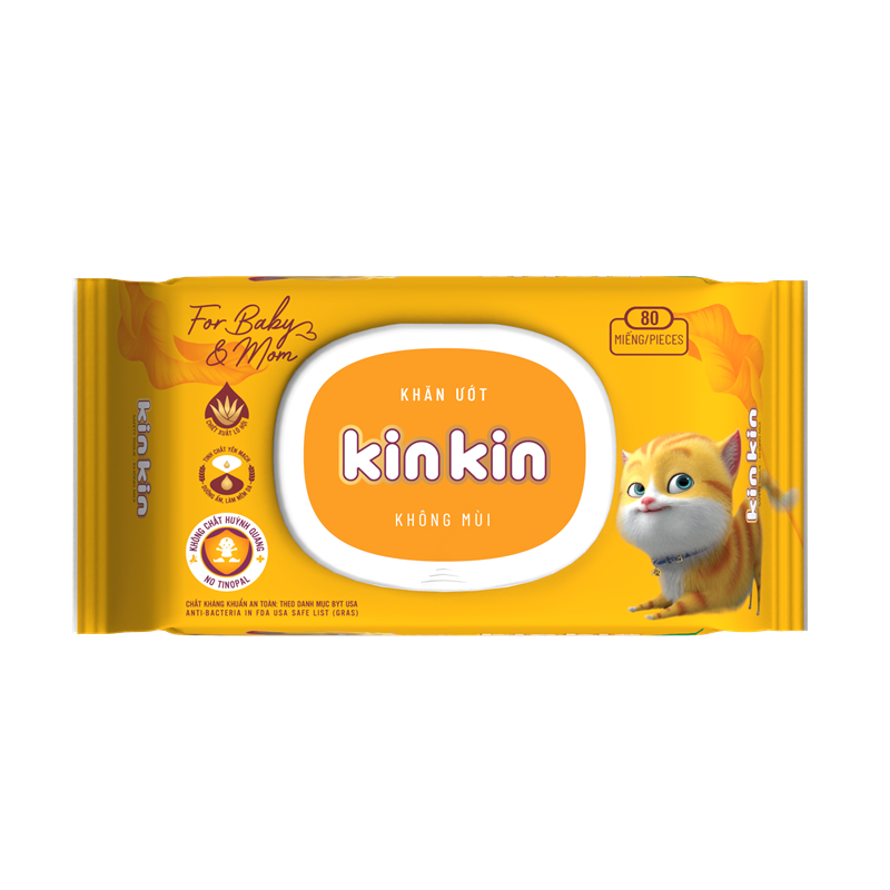 Kinkin ทิชชูเปียกธรรมชาติแบบไม่ทอ80ชิ้นน้ำยาทำความสะอาดสำหรับเด็กราคาประหยัด
