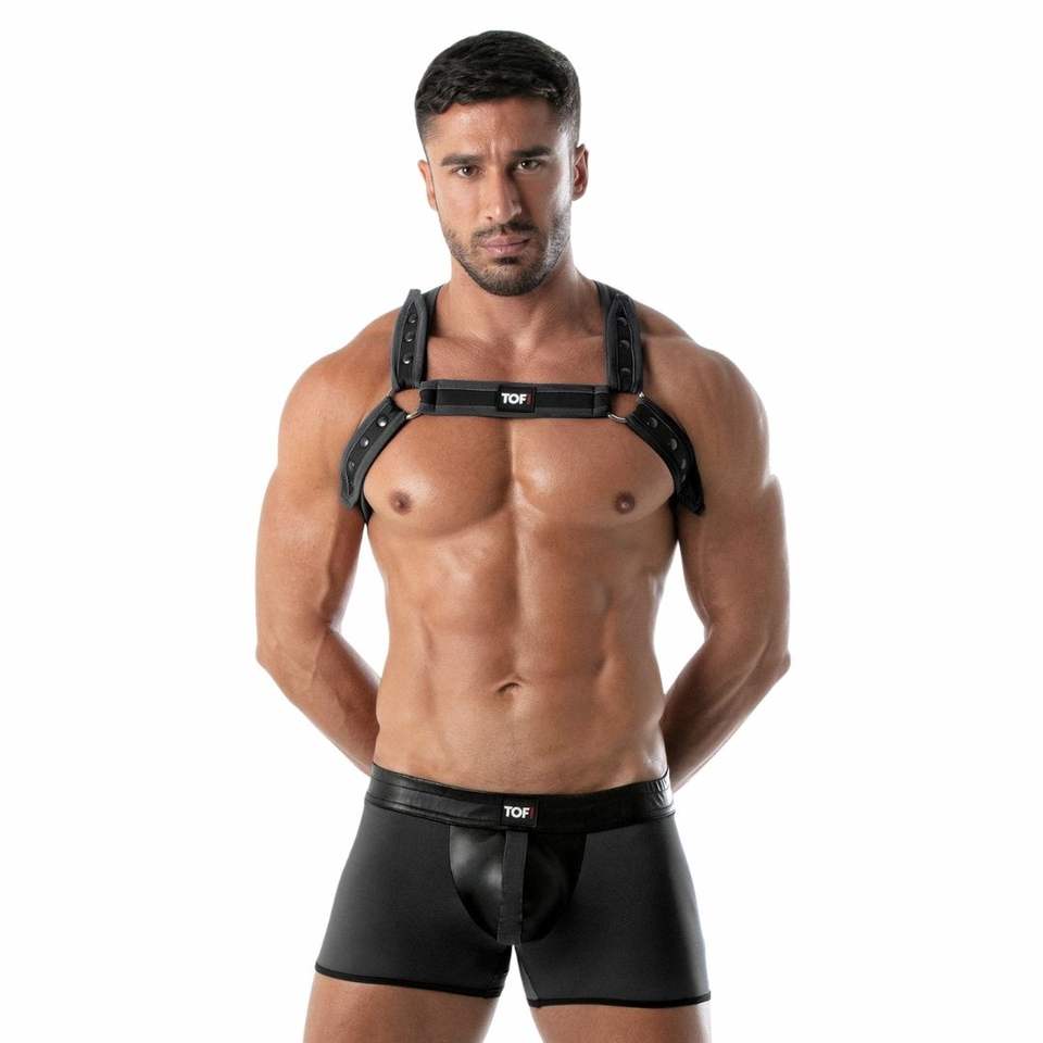 ชุดคลับแวร์เฟติชสำหรับผู้ชายสีดำขนสัตว์เทียมแบบคิงกี้บูลด็อก ชุดเซ็กซี่พร้อมสายรัดหน้าอกปรับได้ขนาดใหญ่พิเศษ