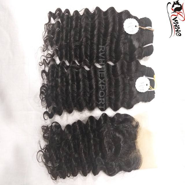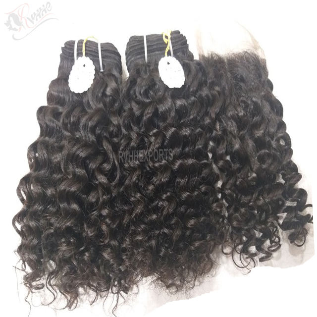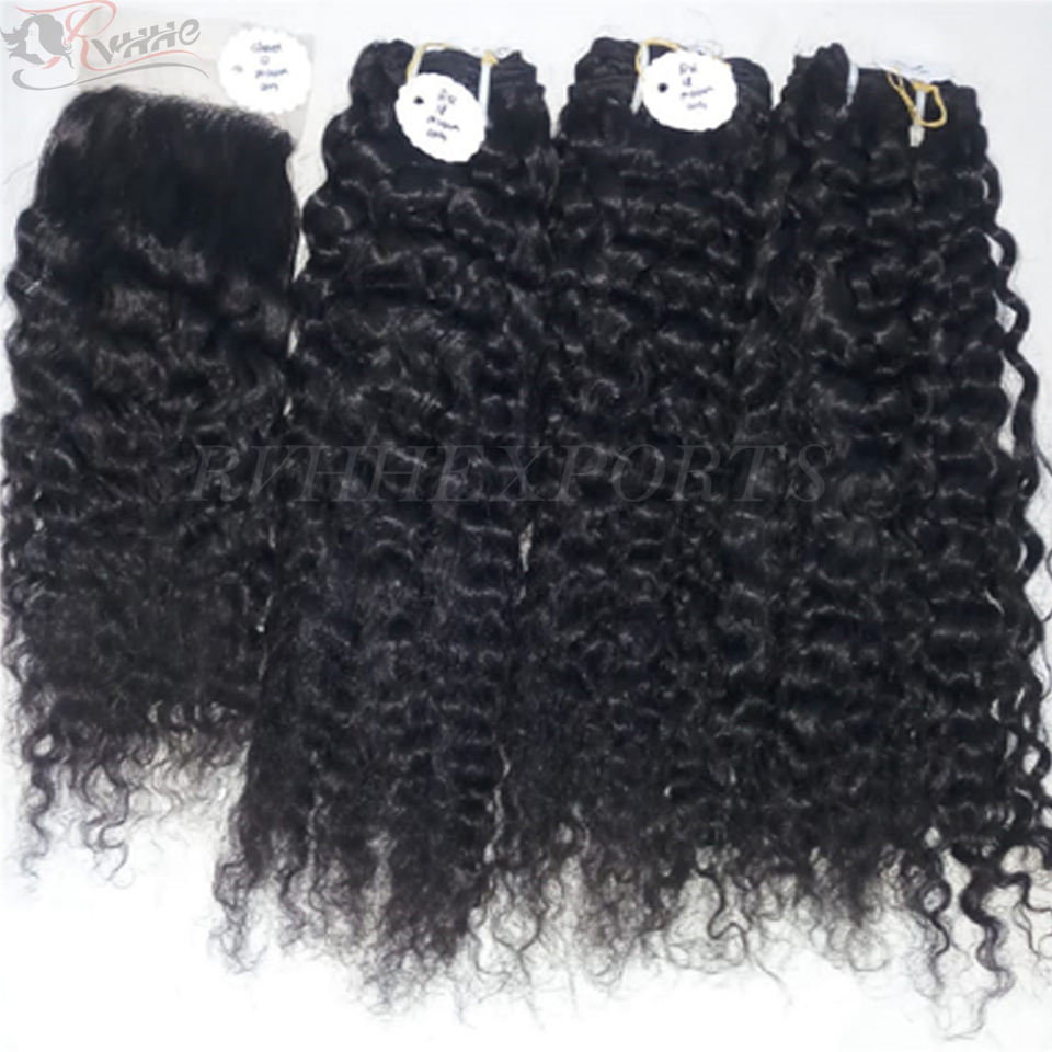 หยักศกหยิกเวอร์จินอินเดียผม Remy 3การรวมกลุ่มกับการปิดลูกไม้
