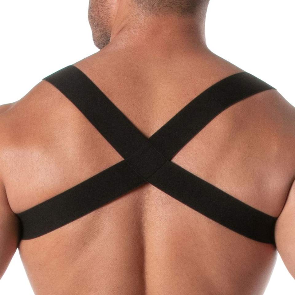 ชุดคลับแวร์หนังเทียมสีดำสำหรับผู้ชาย แบบปรับได้ ไซส์ใหญ่ ระบายอากาศได้ดี พร้อมสายรัดหน้าอก