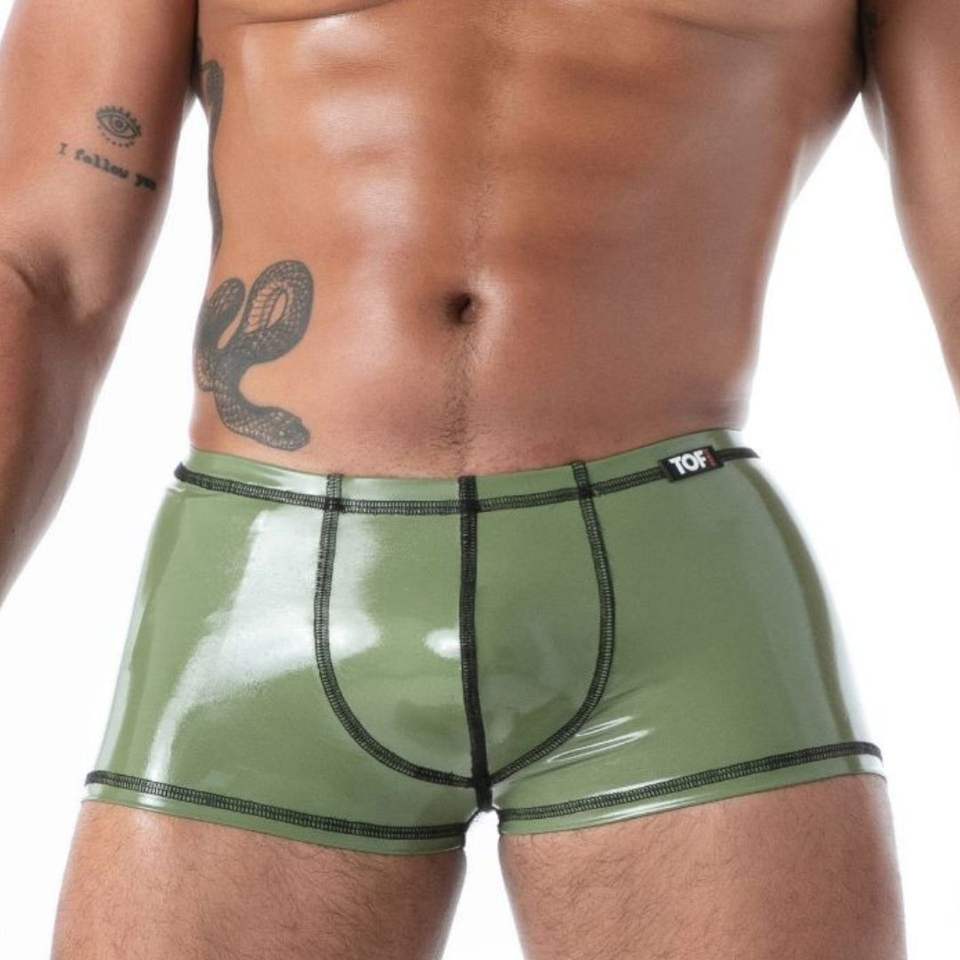 กางเกงบ็อกเซอร์ซิปเต็มตัวสีดำขาวสำหรับผู้ชาย สไตล์เฟติช คลับแวร์ ทรงเข้ารูป เซ็กซี่