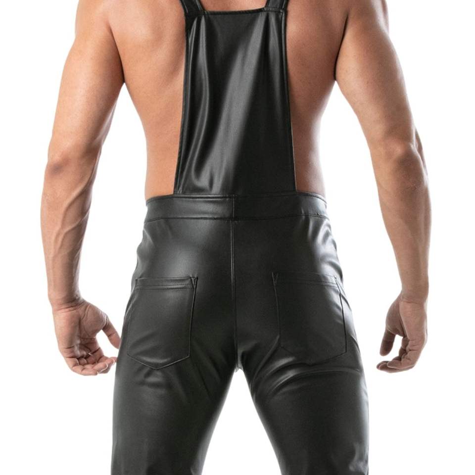 กางเกงเอี๊ยมผูกเชือกแบบเบาสบายสำหรับผู้ชาย สีดำ หนังสไตล์ทางการ เหมาะสำหรับงานปาร์ตี้ สายรัดปรับได้ แฟชั่นโดดเด่น