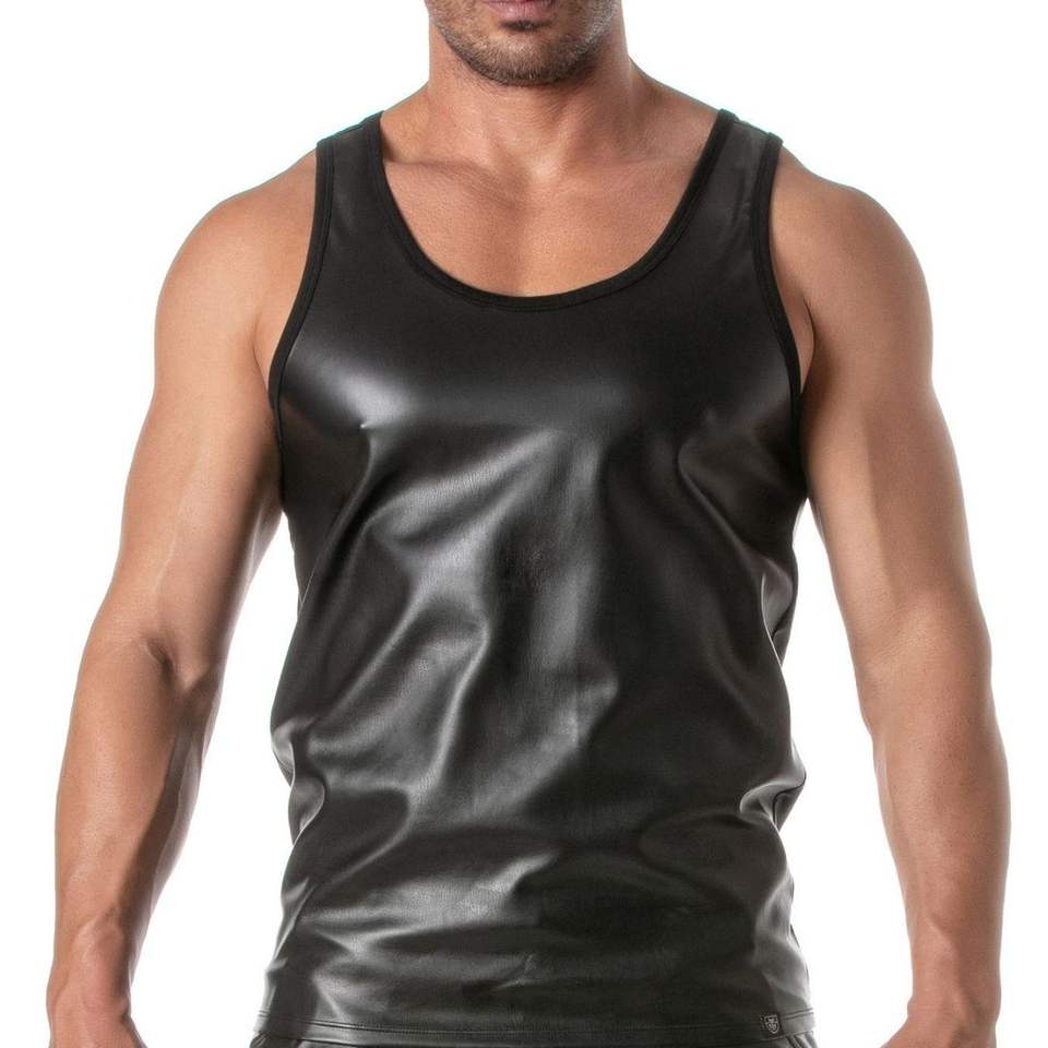 ผ้ากันเปื้อนรัดเอวหนังเทียมสีดำสำหรับผู้ชาย สไตล์เฟติช ชุดคลับแวร์ กระโปรงเซ็กซี่สำหรับงานปาร์ตี้