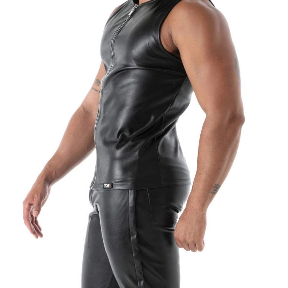 เสื้อกล้ามซิปหน้า ระบายอากาศ แห้งเร็ว สีดำ ทรงเข้ารูป สไตล์หนัง สำหรับผู้ชาย เหมาะสำหรับงานเลี้ยง ออกงาน แฟชั่นโดดเด่น