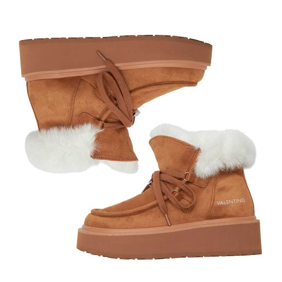 รองเท้าบูทหิมะผู้หญิง Kira Cuoio ดีไซน์แบบผูกเชือก บุด้วยขนสังเคราะห์ พื้นลายพราง พร้อมโลโก้ตัวอักษร
