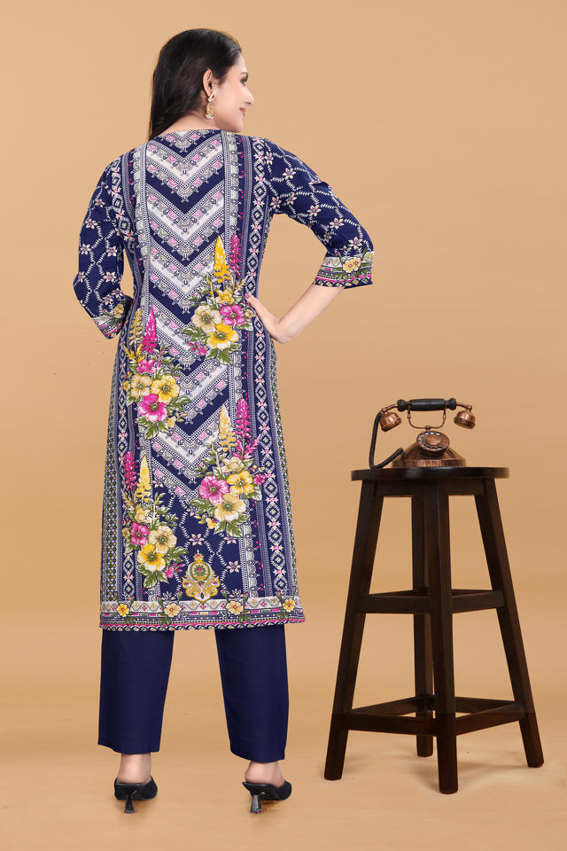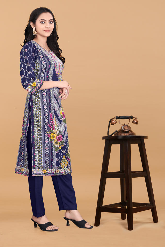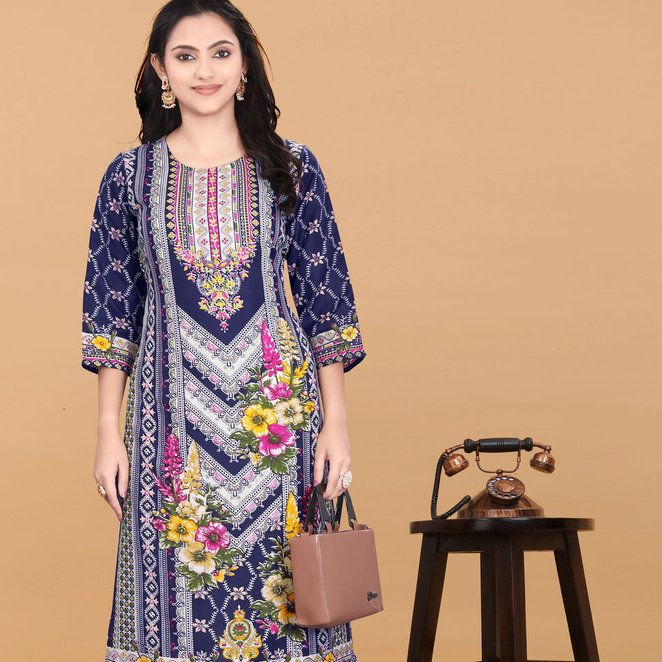 ชุดคุर्ตาพิมพ์ลายสีน้ำเงิน Kiran Nexus สำหรับผู้หญิง แบรนด์ Magic ผลิตภัณฑ์รักษ์โลก เสื้อผ้าชาติพันธุ์ มีสินค้าจำนวนมาก ไซส์ S ถึง 3XL